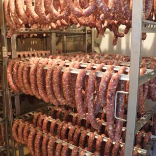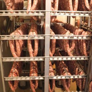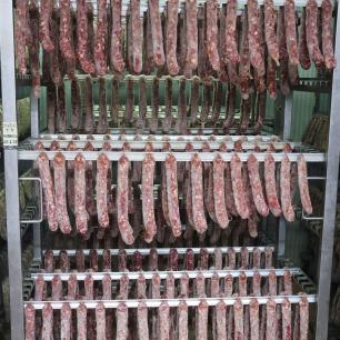 Vođeni smo kroz otvorene prostore gdje uzgajaju vlastite svinje hranjene sjemenom iz obiteljske poljoprivrede, bez skrivenih dodataka . Posebno nas je oduševilo to što sav proces – od farme do sušenja – obavljaju sami. Vlastita sušara od 39 m² omogućuje im da u potpunosti kontroliraju svaki kadar proizvodnje .